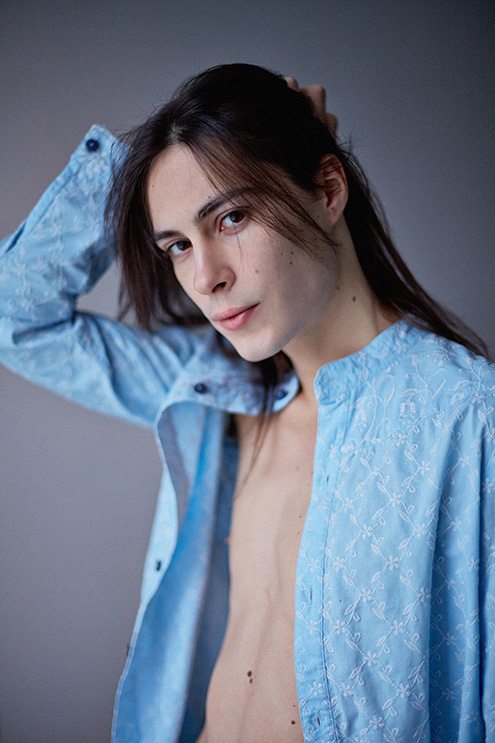 My friends at LIRFONS (a clothing label I joined a bit later) convinced me to try myself as a model. We shot my first book and I had no success whatsoever for the first six months. The look of a tall, skinny, long-haired skater in tight pants was not in demand and looked quite different in comparison to big, muscular men that are successful in the Russian modeling scene.