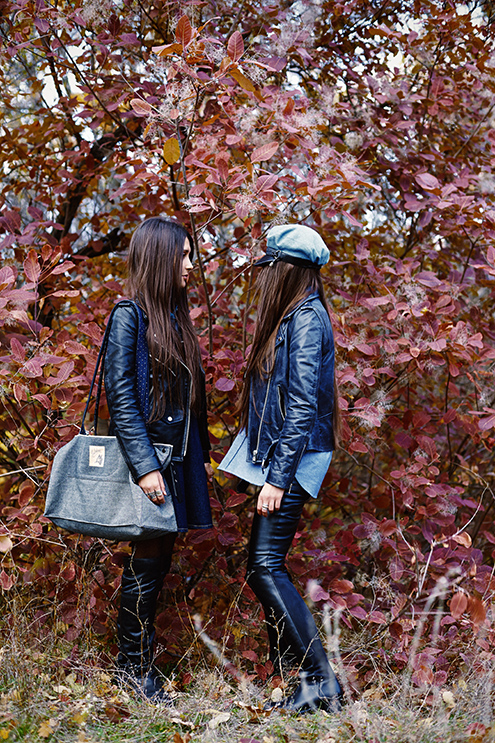 Presenting a small photo story featuring Lirfons sisters walking through a golden wonderland combining LIRFONS clothes and accessories with Tilden denim.