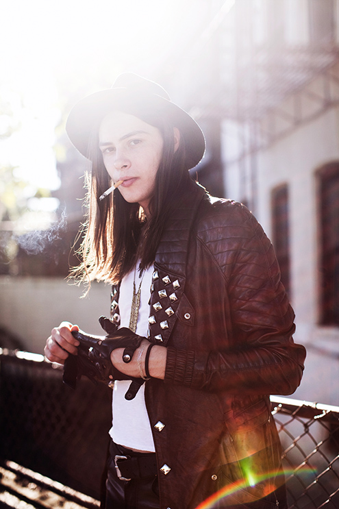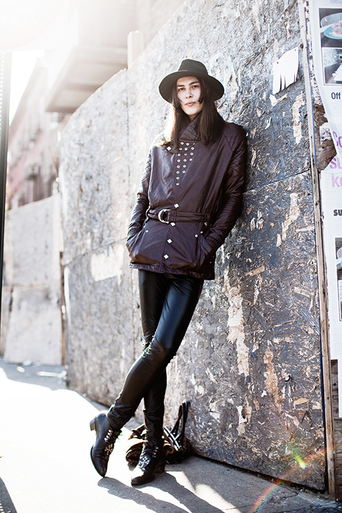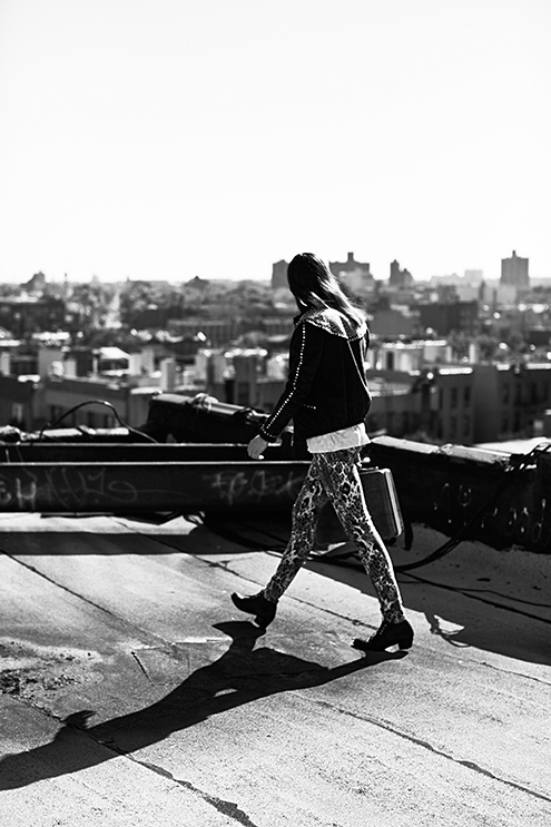 #1 The shoot took place in Brooklyn and wasn’t in any way planned to be in a certain style or tell any story. I believe that everybody involved kind of agreed without saying that the collaboration will be full-on improvisation. This meant coming up with a character and building a relationship with the photographer on the spot. As for the locations; only those were used which we stumbled upon: the streets, entrances, walls and accessible rooftops.